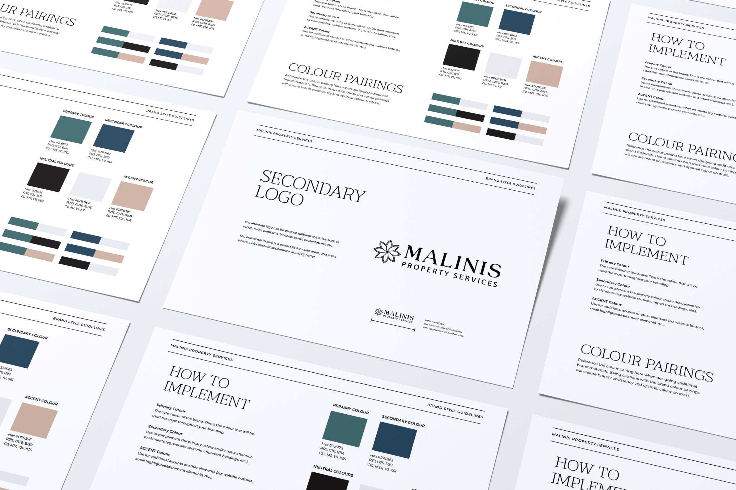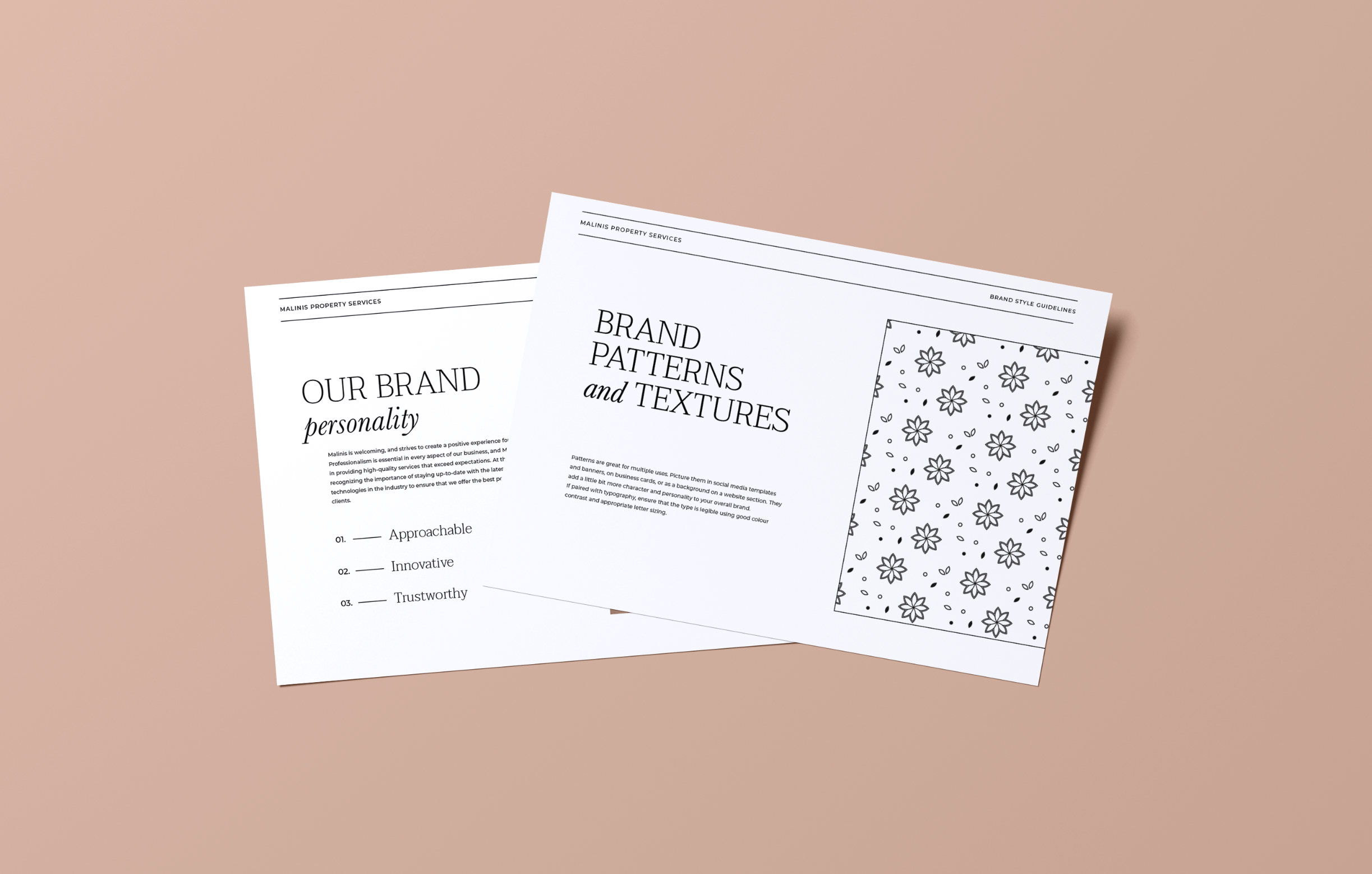 The brand & visual identity of Malinis Property Services was meticulously crafted to appeal to higher-scale companies and corporations while embodying the essence of the company. The logo, central to the visual identity, was designed to represent cleanliness without being overly gender-specific. This was complemented by the typography, which features strong, simple lines with sharp edges that mirror the pointed petals of the flower icon in the logo. The colour palette was carefully selected to include natural hues that signify cleanliness and simplicity, while also providing enough contrast for future designs.